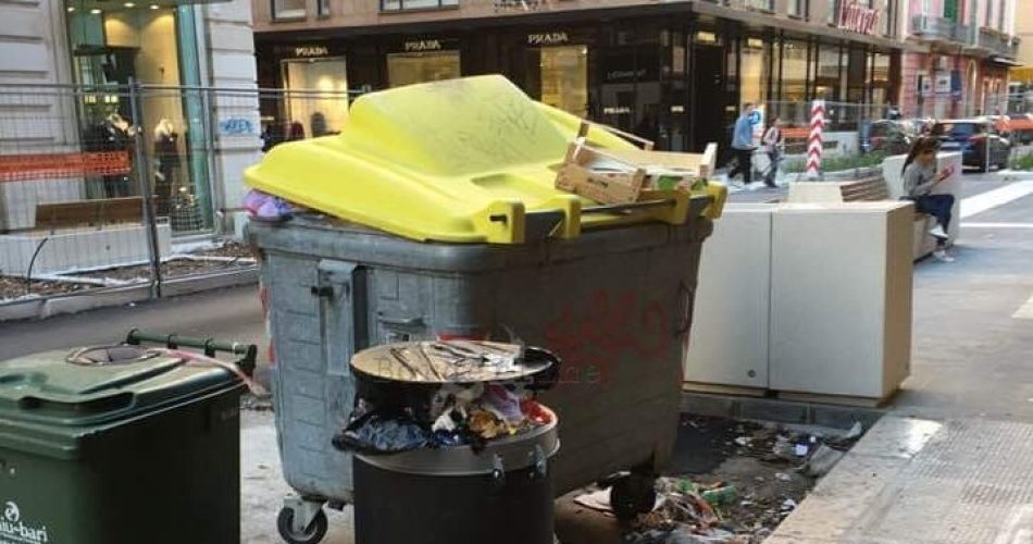 Bari, rifiuti abbandonati da giorni tra via Dante e via Sparano: degrado nel salotto della città