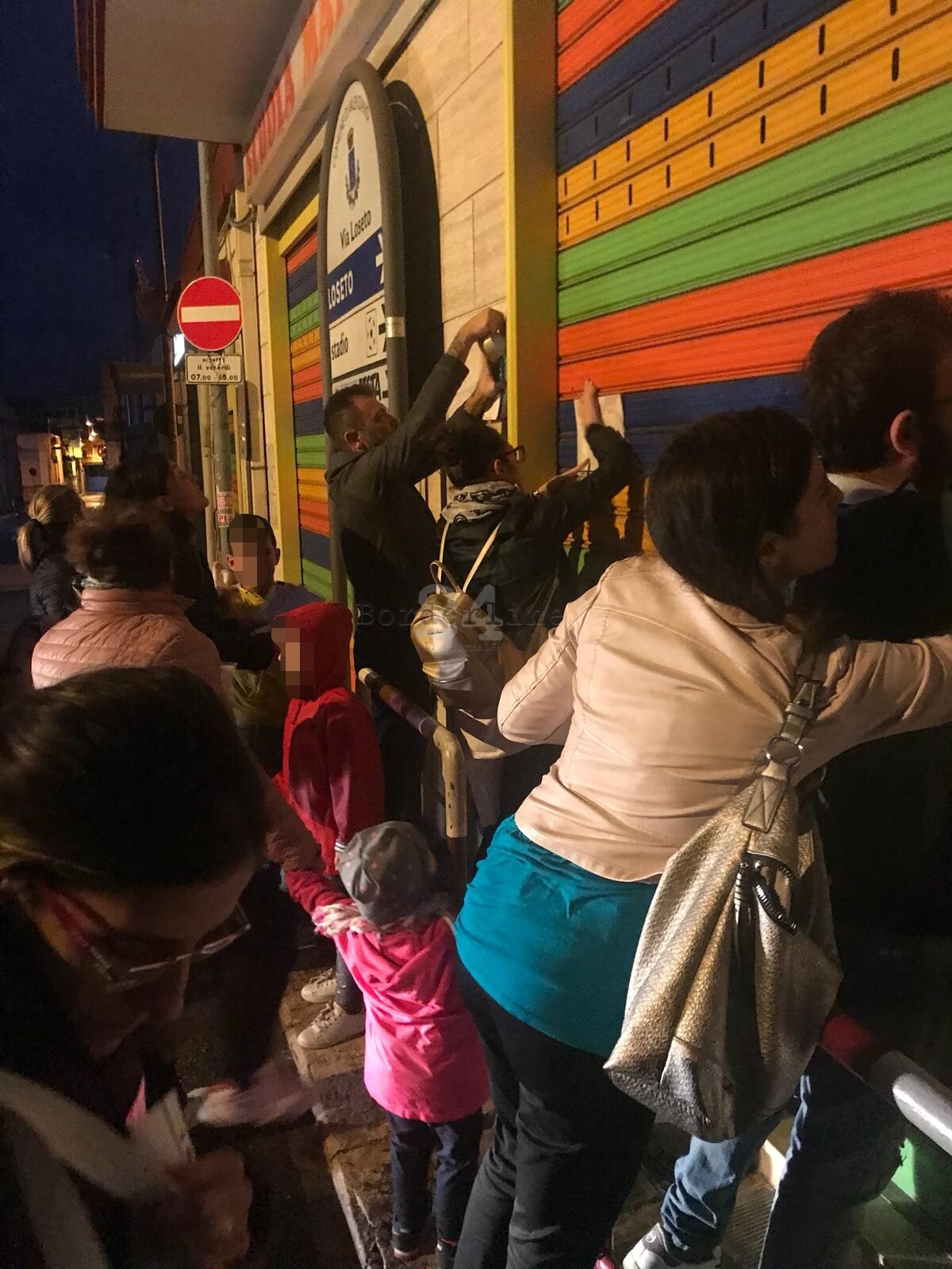 Prima lo striscione allo stadio durante la partita del Bari al San Nicola, poi alle 17 la manifestazione di alcuni genitori che hanno deciso di appendere sui muri della scuola i disegni dei loro figli.