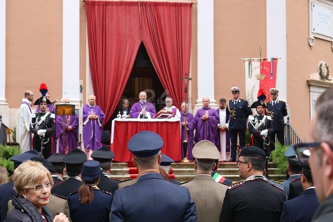 Il cimitero di Bari senza parcheggiatori abusivi. Accade solo il 2 novembre, giorno della commemorazione di tutti i defunti: vigili ai varchi d’accesso, carabinieri nei parcheggi Amtab e ronde da parte dell’esercito. Come ogni anno i baresi acquistano piante e fiori per porgerli in dono ai propri cari. Si soffermano per qualche minuto per una preghiera, in silenzio. Mentre a poca distanza il vescovo Francesco Cacucci ha celebrato la messa alla presenza del sindaco Antonio Decaro, del prefetto Marilisa Magno e delle più alte cariche militari (foto in basso). In coda decine di fedeli attendono il proprio turno dai fiorai autorizzati: vengono scelti sopratutto ciclamini, crisantemi e mughetti. Altri preferiscono rose, gerbere o fiori di plastica.