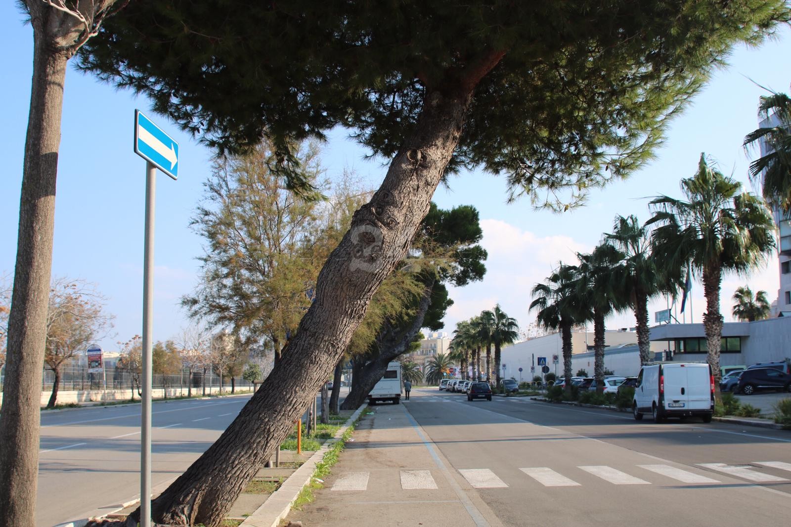 Una nuova “installazione” da giorni fa il suo belvedere in corso Vittorio Veneto. Gli alberi “diagonali”. Sì perché in un tratto della strada che costeggia la Finanza, lì dove c’è la possibilità di lasciare l’auto, bisogna stare attenti ad uscire dallo stesso veicolo. Il rischio è di urtare direttamente sui tronchi che, a causa del forte vento delle passate settimane, hanno subito un danno forse irrimediabile. E rappresentano un pericolo per passanti e automobilisti. Ce ne sono almeno sette in queste condizioni.