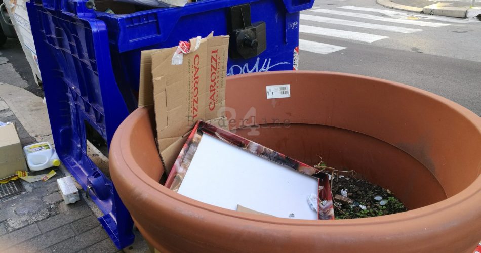 Bari, in via Manzoni i vasi trasformati in cestini dell’immondizia