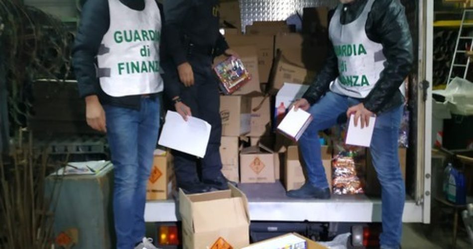 Sono 40mila i fuochi d’artificio, del peso complessivo di una tonnellata, sequestrati dai militari della Guardia di finanza di San Severo che hanno denunciato due persone per il reato di commercio abusivo di materiale esplosivo.