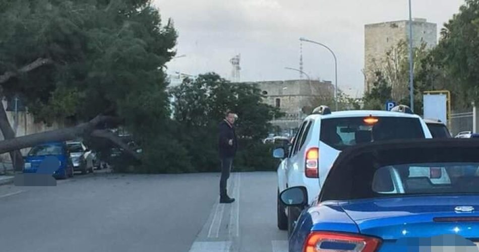 Un pino è stato letteralmente abbattuto dal vento che spira sulla città di Bari in queste ore e ha danneggiato un’auto in corso De Tullio, sul lungomare della città vecchia. Sul posto sono intervenuti vigili del fuoco e Polizia locale per ripristinare la viabilità. L’albero ha travolto una Fiat Panda parcheggiata e ha causato rallentamenti del traffico nella mattinata. Per fortuna non ci sono feriti (foto Antonio Guido Facebook).
