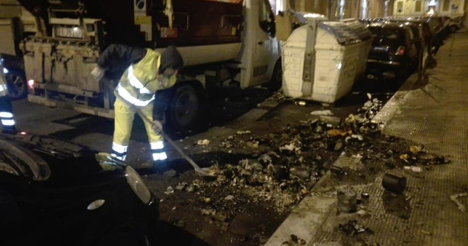 Pulizie questa notte dell’Amiu per rimuovere i resti dei 17 cassonetti incendiati due notti fa. E mentre sono in corso le indagini della polizia dopo la denuncia del sindaco e del presidente dell’Amiu, questa notte i netturbini hanno proceduto alla pulizia delle zone colpite.