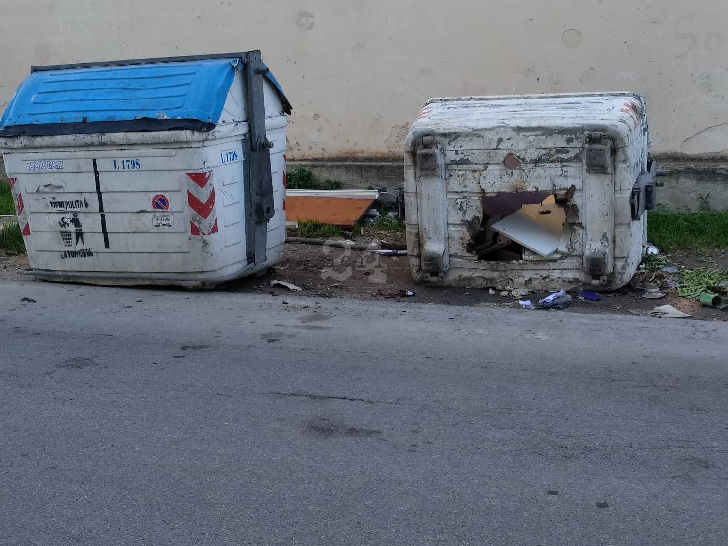 Bari, i rifiuti? Si gettano dal fondo del bidone: ecco quel che rimane di un cassonetto