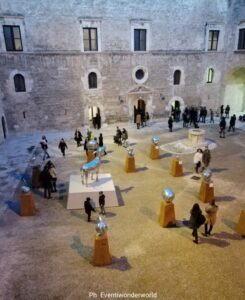 Nel cortile interno del castello invece sono installate le sculture in alluminio di Giuseppe Carta e nelle sale interne ci sono le sue sculture in resina e i suoi magnifici dipinti realisti. Ho scoperto un artista a tutto tondo che mi ha fatto appassionare molto. La mostra intitolata “Epifania della Terra” è allestita contestualmente anche nelle corti del Castello di Manfredonia, nelle sale del Castello di Gioia del Colle e in quelle del Castello di Trani. Carta è stato definito “un pittore virtuoso che passa con la medesima maestria dalla natura morta al ritratto, abile scultore già coinvolto in numerosi eventi di richiamo internazionale”.