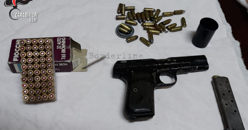 Lo hanno scoperto ieri pomeriggio a Giovinazzo i Carabinieri della Compagnia di Molfetta – Sezione Operativa, che hanno arrestato un 36enne del luogo, già noto alle forze dell’ordine, con l’accusa di detenzione illegale di arma clandestina e del relativo munizionamento. I militari, durante uno specifico servizio, finalizzato alla ricerca di armi, hanno eseguito diverse perquisizioni nel centro cittadino di Giovinazzo. Nel corso di una di queste, in un garage in uso al 36enne,  hanno trovato, in un mobiletto sito nel bagno di servizio, una pistola semi automatica marca Colt,  provvista di matricola, non censita in Italia, perfettamente funzionante, dotata di caricatore con 3 proiettili, nonché una scatola contenente quasi un centinaio di munizioni, tutte cal.7.65, detenute illegalmente, rinvenute nello stesso armadio.