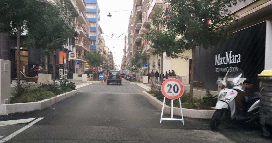 Seppure provvisori, i primi cartelli per il limite di velocità agli incroci con via Sparano sono arrivati. Il limite di velocità è a 20 km/h (non 10 come annunciato nelle scorse settimane) in prossimità degli attraversamenti pedonali: il Comune di Bari, comunque, ha inasprito le limitazioni per gli automobilisti, prima il limite era a 30 Km/h.