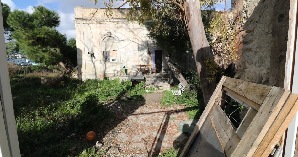 L’edificio, che appare come un residuo delle vecchie costruzioni periferiche in via San Giorgio Martire, è confinato tra il ponte Adriatico, la lama antistante (foto in basso) e il parcheggio Lidl da 200 posti in una stradina privata che finisce tra le sterpaglie. La campagna circostante è disseminata da rifiuti, c’è perfino una carcassa di un pastore tedesco. Porta d’ingresso divelta, ci sono sedie e tavoli con i residui della cena consumata la sera prima, un pallone basket e lo stendibiancheria. “La recinzione del parcheggio confina con questo luogo di degrado, che può essere occupato da chiunque”, scrive un lettore che segnala il caso.