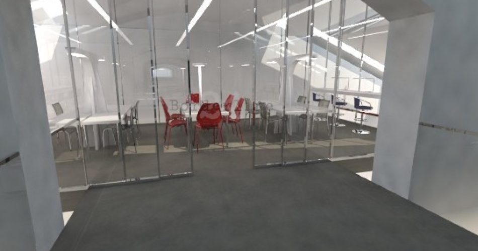 La ex palazzina “Comando”, (palazzina A) si estende invece su 1500 mq e ospiterà sale studio e uffici, laboratori e sale per il personale.