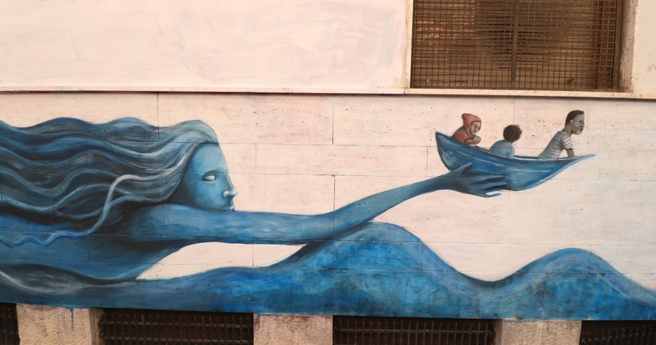 Dopo 10 giorni è stato ultimato il murales di Retake Bari in via Fornari. E’ il primo passo verso la riqualificazione della strada pedonale che sarà “inaugurata” (il 29 marzo) con una festa dei volontari insieme a 20 dipendenti dello stabilimento barese Bosch, che ha sostenuto l’iniziativa. L’opera lunga 60 metri, dello street artist Giuseppe D’Asta, rivaluta le mura esterne della scuola Mazzini-Modugno, in piazzetta dei Frati Capuccini. Contro il degrado, le illustrazioni dal tema marino raccontano in quattro atti l’avventura di una famiglia di migranti che viene salvata dal capoluogo pugliese.