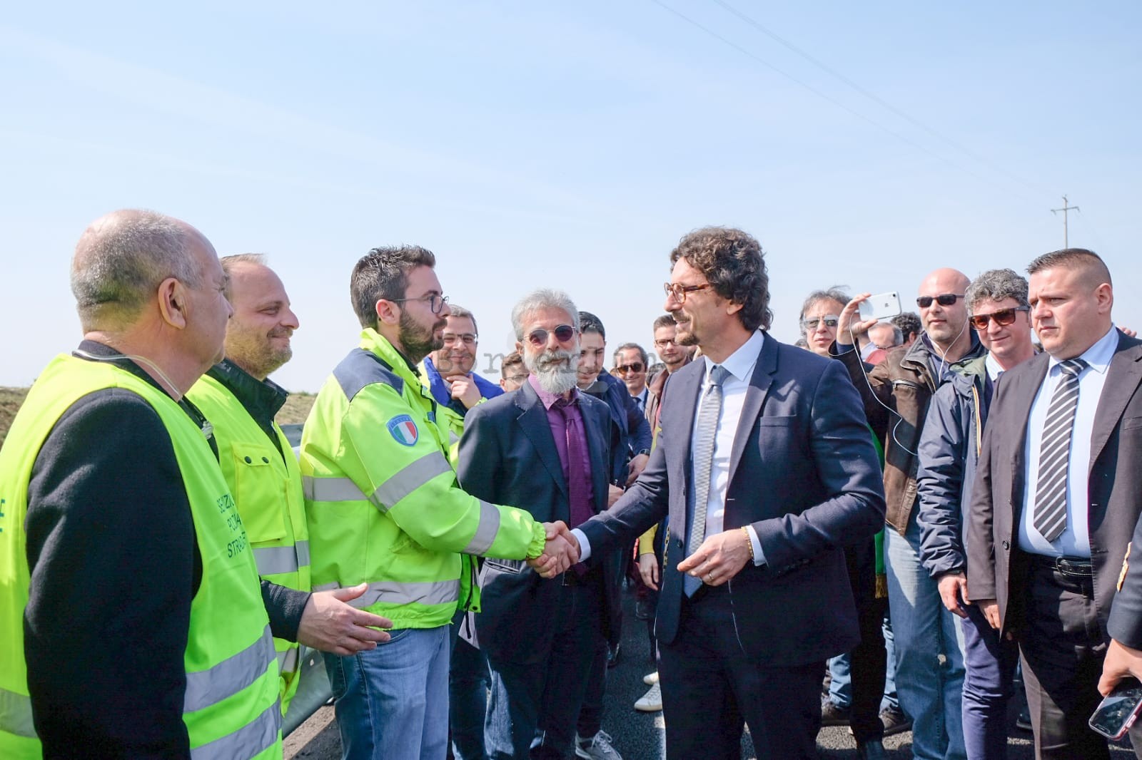 Il ministro delle Infrastrutture, Danilo Toninelli, ha inaugurato l’apertura al traffico del nuovo tratto della strada statale 96 tra Toritto e Modugno, vicino a Bari. Prima della cerimonia, alla presenza dell’ad di Anas, Massimo Simonini, e del sindaco della città Metropolitana Antonio Decaro, Toninelli ha visitato il cantiere della variante di Altamura che costituirà il collegamento tra la strada statale 96 «Barese» e la 99 di Matera.