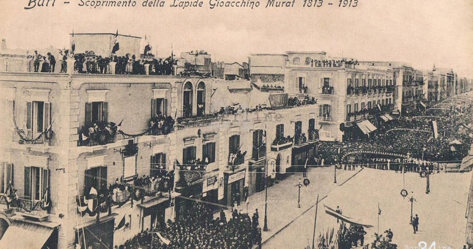 La prima pietra della nuova Bari, quella oltre le mura del centro storico fu posata da Gioacchino Murat il 24 aprile del 1813 ad angolo tra corso Cavour e corso Vittorio Emanuele. Il giorno dopo, il 25 aprile, Murat firmò il decreto per la costruzione del nuovo borgo.