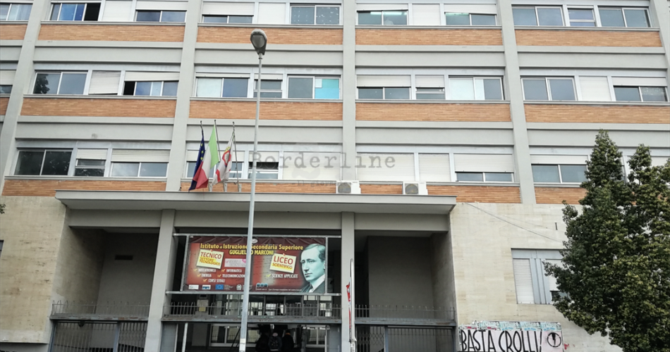 “Da anni e anni parliamo di sicurezza scolastica – inizia così la nota del Blocco Studentesco – e della revisione completa degli istituti della città, dopo anche le azioni allo Scacchi, Perotti e Giulio Cesare ci ritroviamo ad essere presenti anche al Marconi. In quest’ultimo istituto, sotto gli occhi di tutti, da anni a questa parte la sicurezza è un optional, ma qualcuno ancora sostiene il contrario, e la scorsa mattina ne abbiamo avuto la conferma. Vista la gravità dell’incidente con il crollo di diversi pezzi di calcinacci dalla tettoia, fortunatamente chiusa il sabato”.