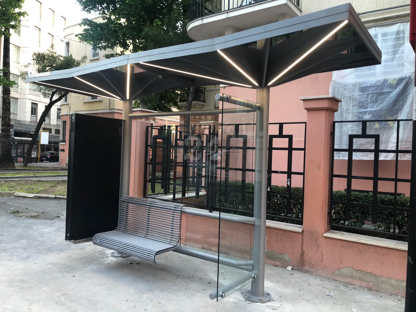 Per quanto riguarda la nuova struttura installata via De Cristoforis, nei pressi di piazza De Nicola, si tratta di un prototipo rispondente ai criteri richiesti in fase di progettazione. Il modello scelto è infatti coerente con il concept dell’ombrello, così definito grazie all’effetto dell’ombrello aperto realizzato con nove razze in acciaio inserite sulla pila centrale con illuminazione integrata. La pensilina, oltre che di una panchina ergonomica, è munita anche di prese usb per la ricarica dei cellulari, impianto fotovoltaico e totem lcd utilizzato per comunicazioni istituzionali – messaggi aziendali e comunicazioni agli utenti del servizio di trasporto pubblico -, informazioni sulle condizioni meteorologiche e annunci promozionali. Tutte le strutture saranno accessibili a persone con disabilità e, in particolare, a soggetti ipovedenti.