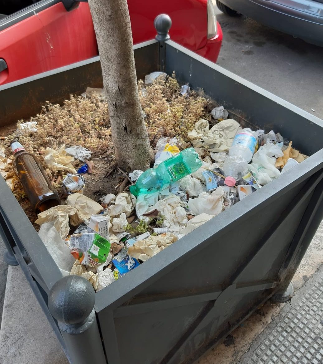 Sotto accusa anche l’operato della polizia locale. “Come è possibile che fanno sempre multe e poi nessuno si accorge di questi abbandoni continui di rifiuti?”, continua. Anche i vasi delle piante sono ormai degli immondezzai. Accade in via Manzoni (per quei vasi che non vengono curati dai commercianti) e in via Crispi.