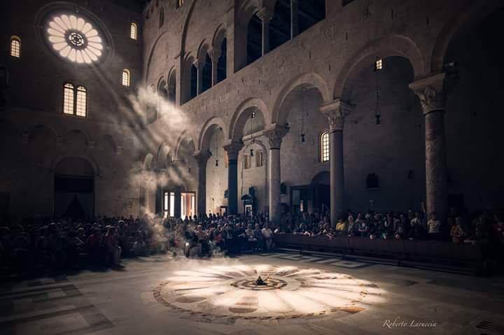 La “magia della luce” si ripete anche quest’anno nella Cattedrale di San Sabino, a Bari vecchia. Nel pomeriggio di domani (21 giugno), intorno alle 17, dalla navata si potrà assistere alla spettacolo della luce solare che dal rosone si proietta sul mosaico ai piedi dell’altare. L’evento rappresenta idealmente l’avvio della stagione estiva, proprio nel giorno del solstizio.