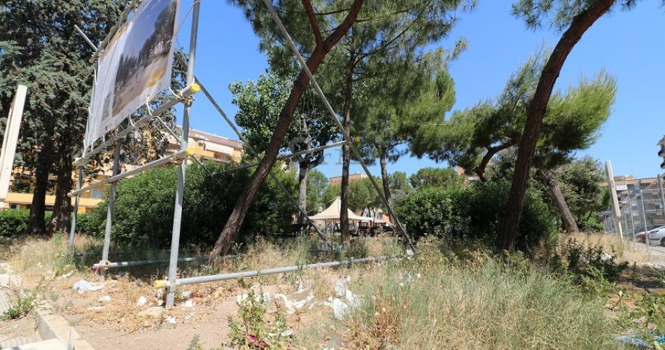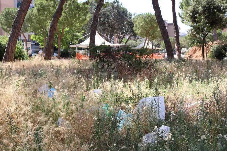 Cumuli di rifiuti sotto il cartellone del rendering e lungo tutto il perimetro delimitato dalle transenne. Il cantiere per la riqualificazione di piazzetta dei Papi, nel quartiere Poggiofranco, dallo scorso 13 maggio è stato circondato da plastica, lattine, bottiglie di vetro e altri scarti. Lo segnalano i residenti, preoccupati anche per le tempistiche e la presenza di soli due operai al restauro dell’area verde: il sindaco Antonio Decaro durante la campagna elettorale aveva annunciato la consegna dell’opera entro 120 giorni (settembre). “Qui proliferano insetti e topi, non c’è più un luogo destinato al relax di anziani e famiglie”, commenta un commerciante.
