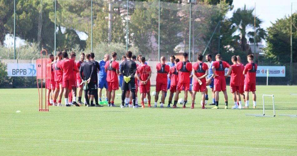 Nel primo allenamento all’antistadio di questa stagione, oltre 300 tifosi hanno abbracciato la truppa guidata da mister Cornacchini. I galletti, in vista del Triangolare del Centenario con Salernitana e Reggina (giovedì 1 agosto, Stadio Arechi), hanno effettuato una lunga seduta di allenamento pomeridiana. Dopo una prima parta di riscaldamento attivo sviluppato su circuiti tecnici, la squadra ha proseguito con la parte tattica su trequarti campo; a seguire ripetute sulle medie e brevi distanze e una partitella a ranghi misti su metà campo, aperta da una bella rete a giro di Di Cesare.