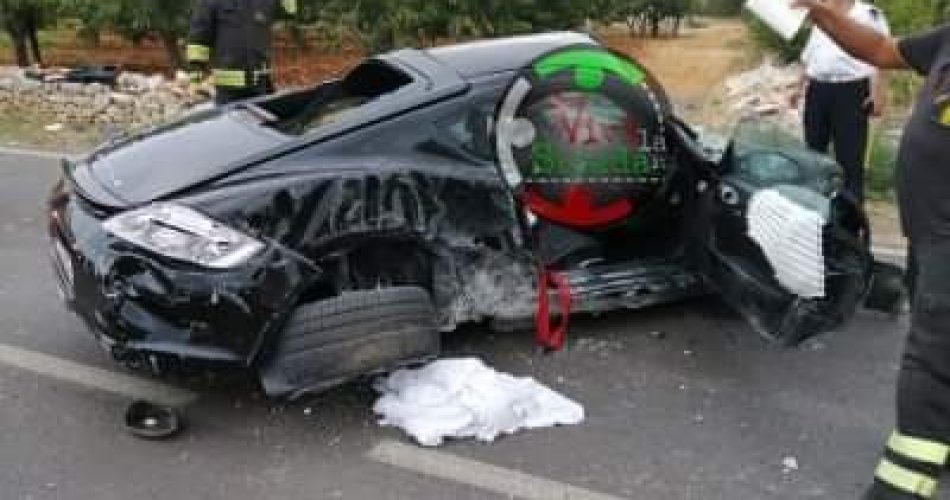 Conversano, perde il controllo della Porsche: due feriti, auto distrutta
