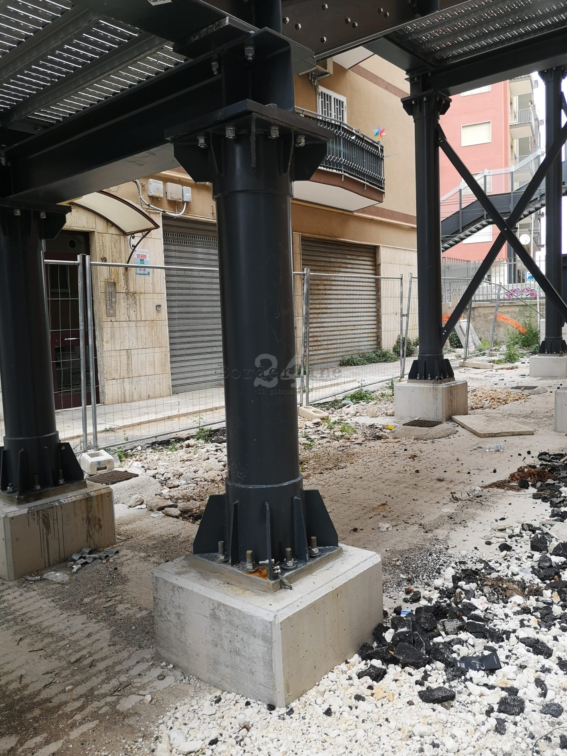 Mentre dalla parte di Japigia la zona sottostante la passerella è ancora “ingabbiata” dalle transenne.