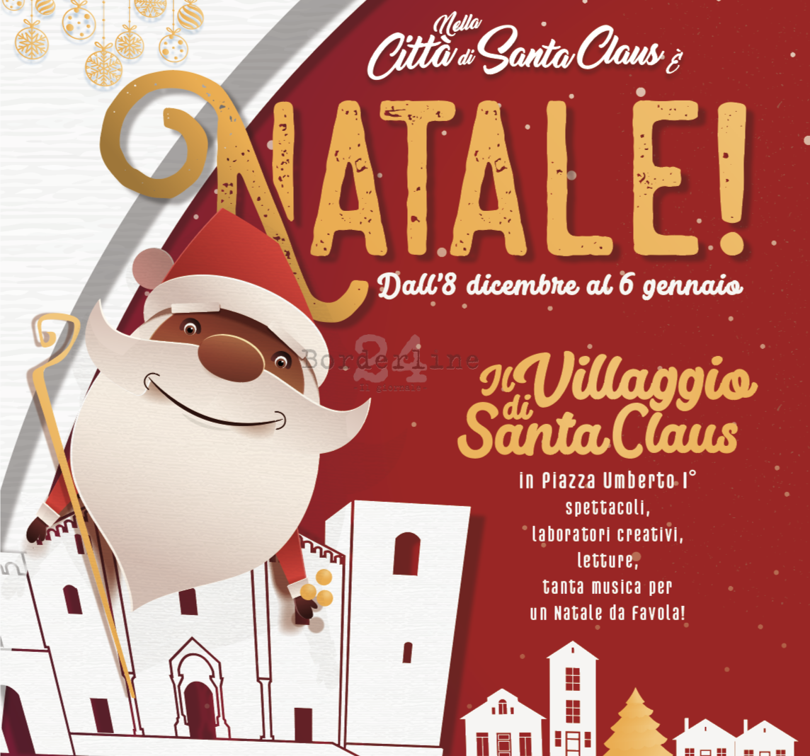 L’8 dicembre, invece, si entrerà nel vivo della manifestazione con l’inaugurazione, in piazza Umberto, del Villaggio e della Casa di Babbo Natale, quartier generale di tutto il programma dedicato ai più piccoli e alle famiglie, dove si alterneranno ogni giorno spettacoli, laboratori e giochi e sarà allestita una biblioteca frequentata da elfi intenti a leggere ai bambini e alle bambine storie incantevoli ricche di atmosfere natalizie. Nel Villaggio ci sarà anche Babbo Natale, pronto a ricevere le lettere dei bambini e a farsi fotografare con loro.