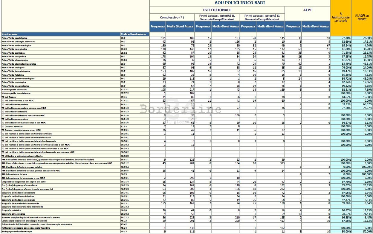 Tra le situazioni più problematiche quella del Policlinico di Bari. Per una colonscopia bisogna attendere 417 giorni contro i 10 se si procede in regime privato.