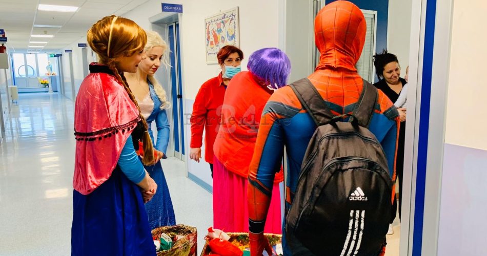 Accanto alla tradizionale befana ad allietare i piccoli pazienti del pediatrico i cosplay di Spiderman, di Elsa e Anna, della Maga Magò.
