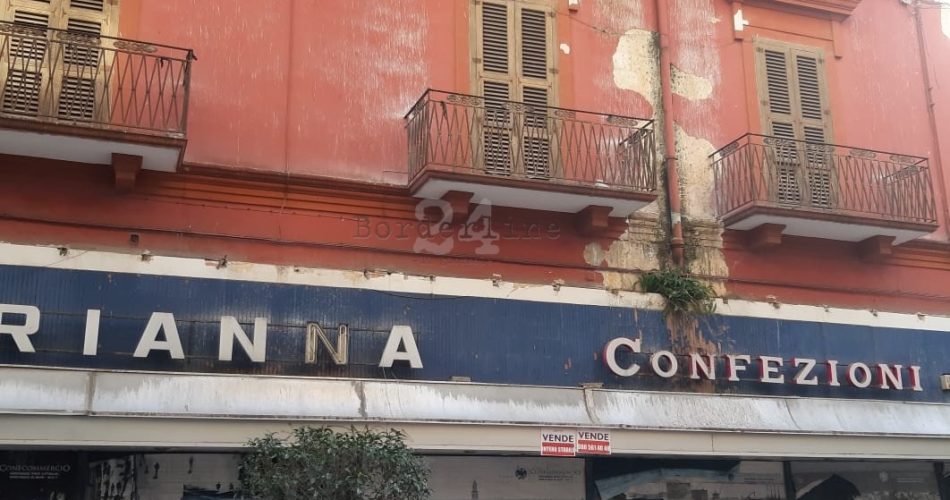 In via Manzoni dopo anni di abbandono compare un cartello vendesi sul palazzo che ospita lo storico negozio Marianna chiuso da tempo e simbolo della crisi delle attività della strada commerciale del Libertà.