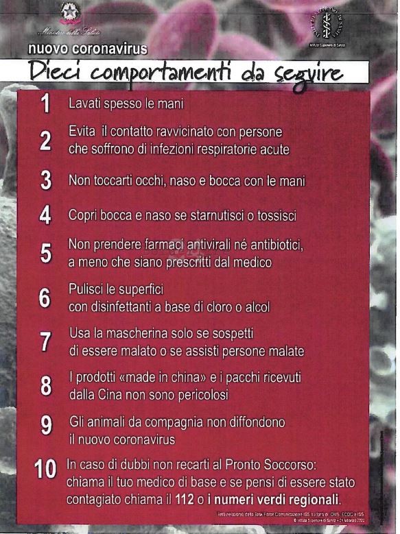 In caso di comparsa dei sintomi bisogna avvertire il medico di famiglia o l’operatore di sanità pubblica, indossare la mascherina chirurgica fornita  all’avvio del protocollo e bisogna  allontanarsi da altri conviventi. Rimanere in stanza con porta chiusa in attesa del trasferimento dell’ospedale. L’ordinanza dispone anche l’uso delle forze dell’ordine nei casi in cui non vengano rispettate le misure di urgenza imposte.