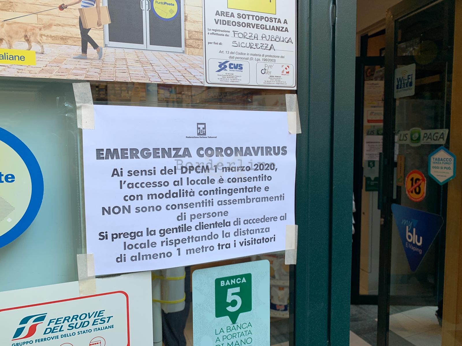 Nel capoluogo pugliese, dal centro alle periferie, è tangibile la risposta di chi è costretto ad uscire di casa per lavoro, motivi di salute o per fare la spesa. I punti maggiormente sensibili in cui si conta un’alta percentuale di mascherine è la stazione centrale, soprattutto nel tratto dei sottopassi. Stessa situazione anche nelle farmacie e mercati rionali. In contemporanea le attività commerciali hanno limitato, come accade dal primo marzo, il numero degli ingressi e aumentato la distanza di sicurezza con i clienti causando l’allungamento dei tempi e qualche fila sporadica all’esterno (foto in basso). Da segnalare, che a differenza di altre città metropolitane come Roma e Napoli, nel capoluogo pugliese non si è registrato l’assalto agli ipermercati.