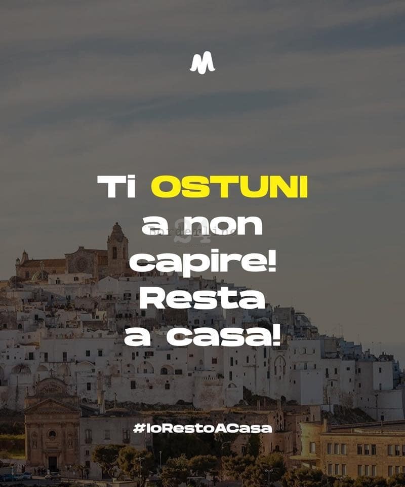 L’immagine d’anteprima mostra sullo sfondo il teatro Petruzzelli, simbolo dello stop alle attività culturali, con il messaggio: “Se esci di nascosto, Bari”. Tra le immagini panoramiche delle bellezze pugliesi compaiono altre scritte divertenti, come: “Ti Ostuni a non capire, resta a casa”. Oppure “Resta a casa, Fasano”. “Se esci sei Bitonto”. E ancora: “Leccellenza del nostro paese non può essere rovinata da sto virus” (in basso). Clicca qui per vedere tutti i 12 slogan