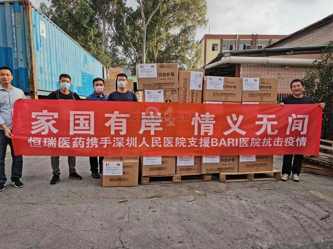 “I paesi hanno le frontiere, l’amicizia non ha confini. Hengrui Medicine e Shenzhen Peoples Hospital insieme al Policlinico di Bari per lottare contro l’epidemia”. Questo messaggio, scritto su uno striscione rosso, accompagna la donazione di mascherine, occhiali e tute protettive da parte di due ospedali cinesi al Policlinico di Bari, come contributo per affrontare questa grave fase dell’epidemia da Covid-19.