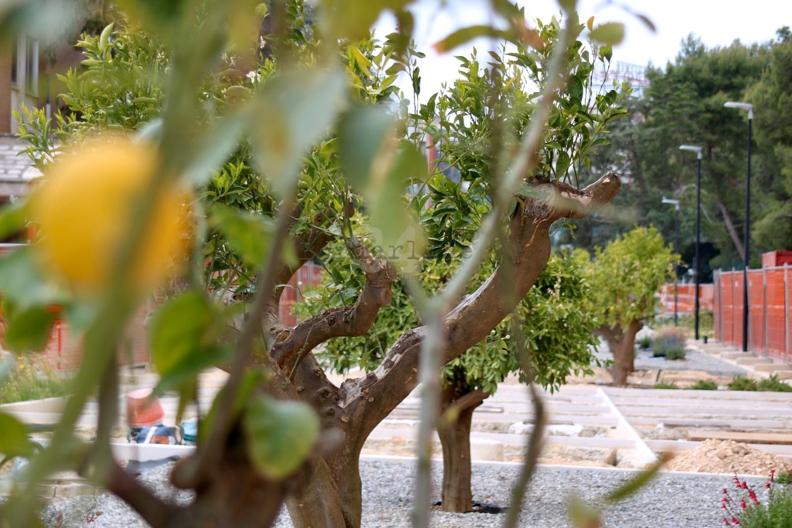 Tra la palazzina principale e quella amministrativa è stato piantato un agrumeto al posto di una strada asfaltata. Sono stati piantati 15 alberi tra limoni, mandarini e aranci. Alla base dei filari di agrumi ci sarà un prato verde e vialetti in ghiaia. Proprio su questo lato dell’ospedale si affacciano le stanze di degenza dei piccoli pazienti che non vedranno più le auto parcheggiate.