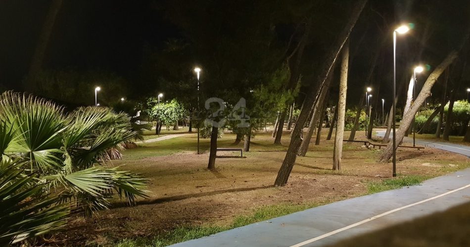 Mentre al parco 2 Giugno procedono i lavori per contingentare gli ingressi (foto in basso), alla pineta di San Francesco lato mare è stata completata l’illuminazione led che garantisce maggiore visibilità e riduzione di consumo energetico. Le operazioni nei prossimi giorni si sposteranno nella pineta lato terra.