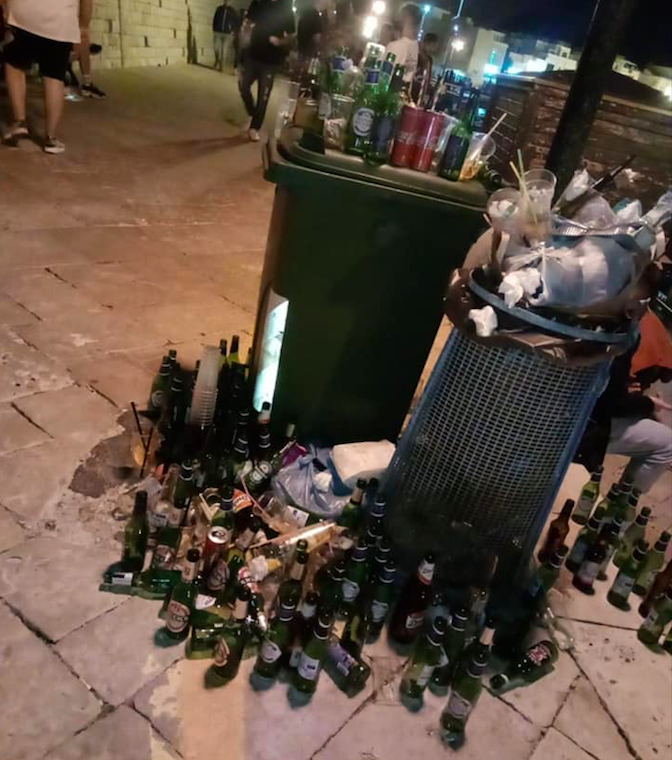 Fiumi di persone riversate in piazza al tramonto e, già all’imbrunire, cassonetti e marciapiedi straripanti di bottiglie e rifiuti. È la fotografia della movida della prima domenica di vera e propria libertà a Torre a Mare, dove il Comitato Spontaneo di Quartiere lamenta assembramenti, mancanza di rispetto delle normative anti-contagio, ma anche inciviltà.