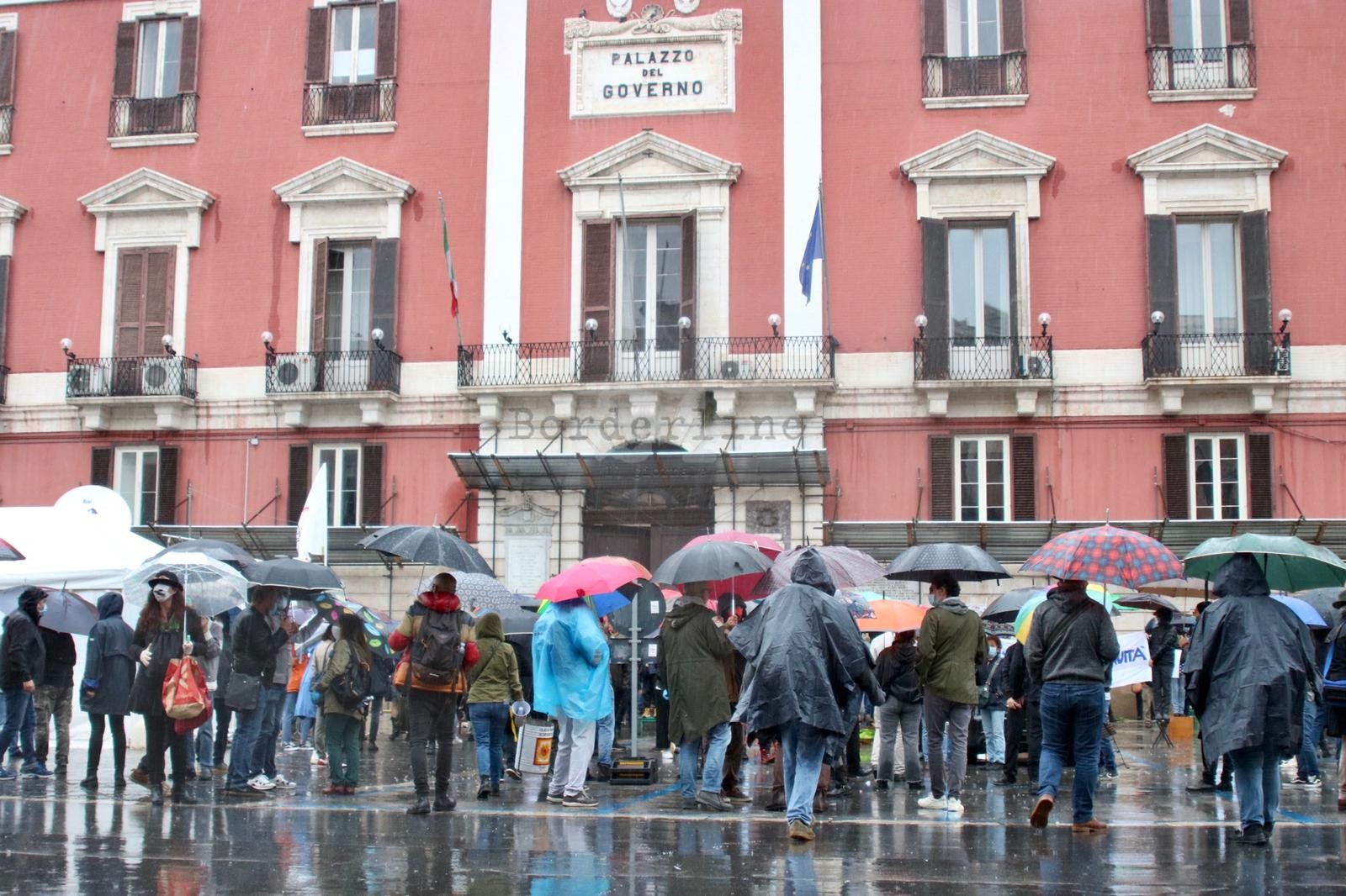 Nonostante la pioggia, i lavoratori pugliesi dello spettacolo sono scesi in piazza, oggi pomeriggio, per far sentire il proprio grido di aiuto, che giunge in un momento in cui l’intero settore della cultura e degli spettacoli è messo in ginocchio dall’emergenza sanitaria conseguente al Covid-19. Appuntamento rispettato a Bari, in piazza della Libertà, dove i lavoratori e sostenitori di tutti i comparti del mondo della cultura, si sono ritrovano per manifestare di fronte al teatro Piccinni, uno dei luoghi simbolo della cultura del capoluogo pugliese.
