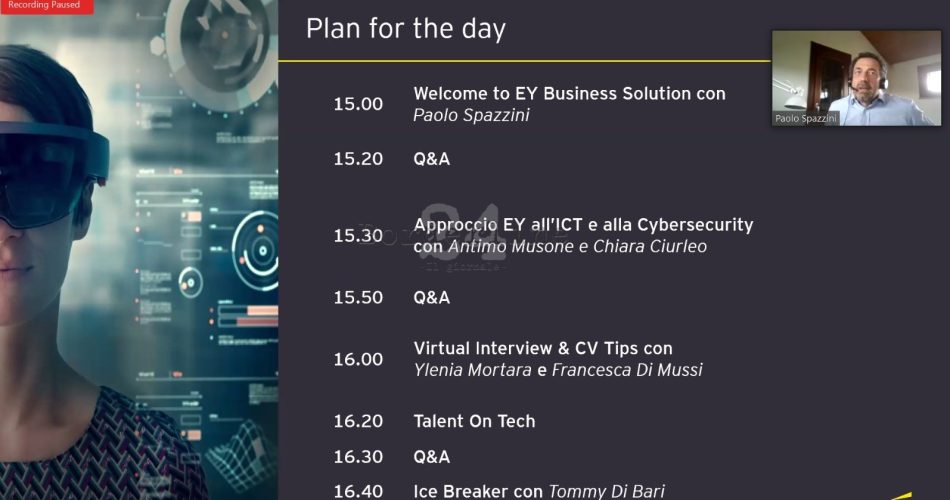 - Virtual Interview & CV Tips con Ylenia Mortara – Senior Talent Acquisition EY Business Solution e Francesca Di Mussi – Recruiter EY Business Solution
