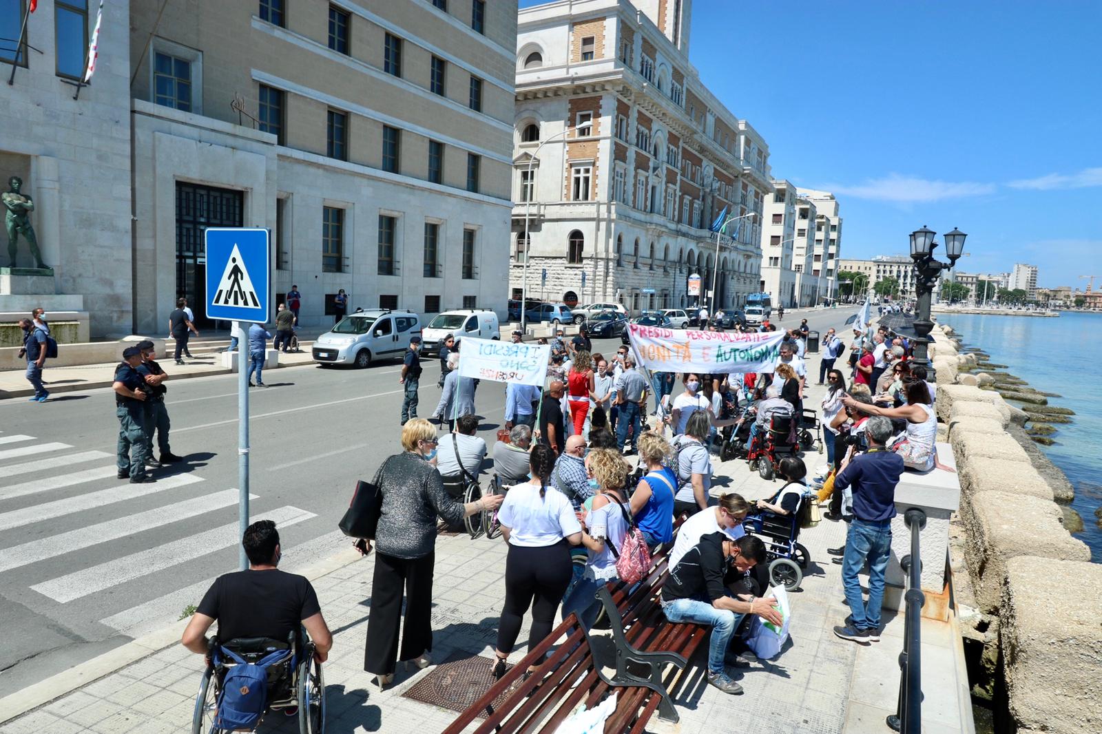 Bari, la protesta dei disabili blocca il lungomare: “No al blocco delle forniture” – VIDEO