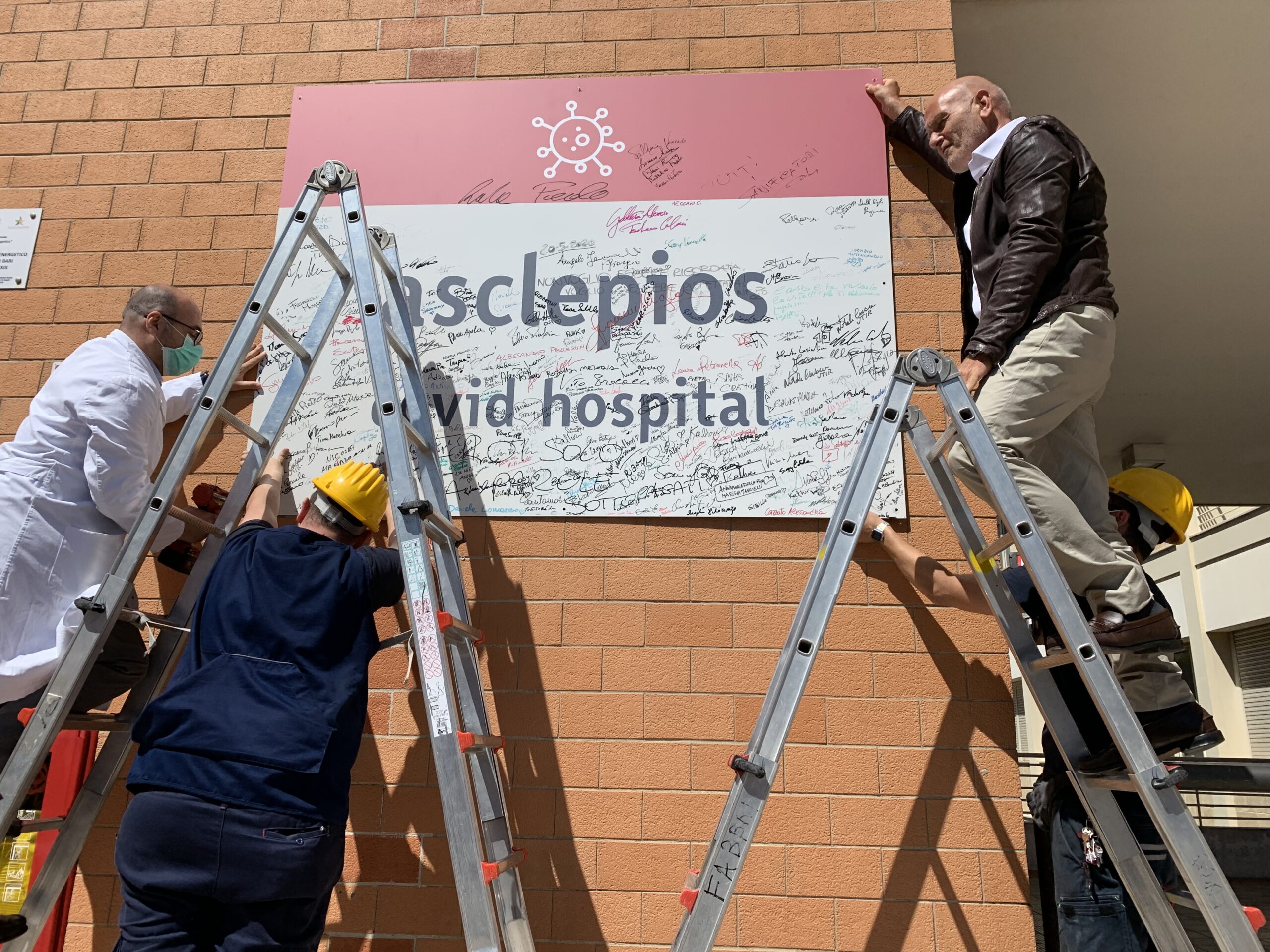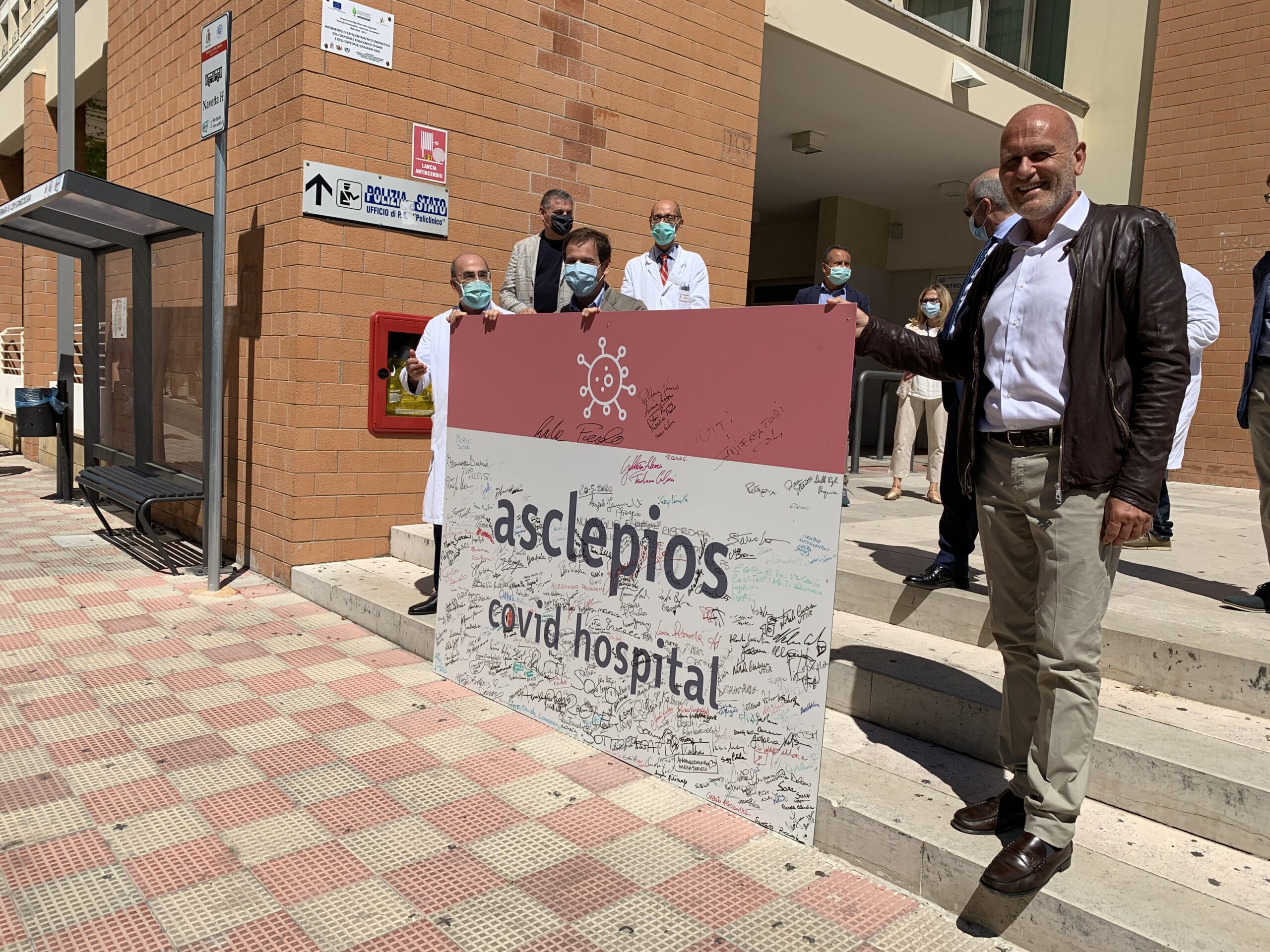 Proprio in occasione dell’ultima guarigione il direttore generale, Giovanni Migliore, ha voluto simbolicamente rimuovere il cartellone del Covid Hospital sul quale medici, infermieri e operatori sanitari che durante l’emergenza sono stati in prima linea hanno lasciato la loro firma.