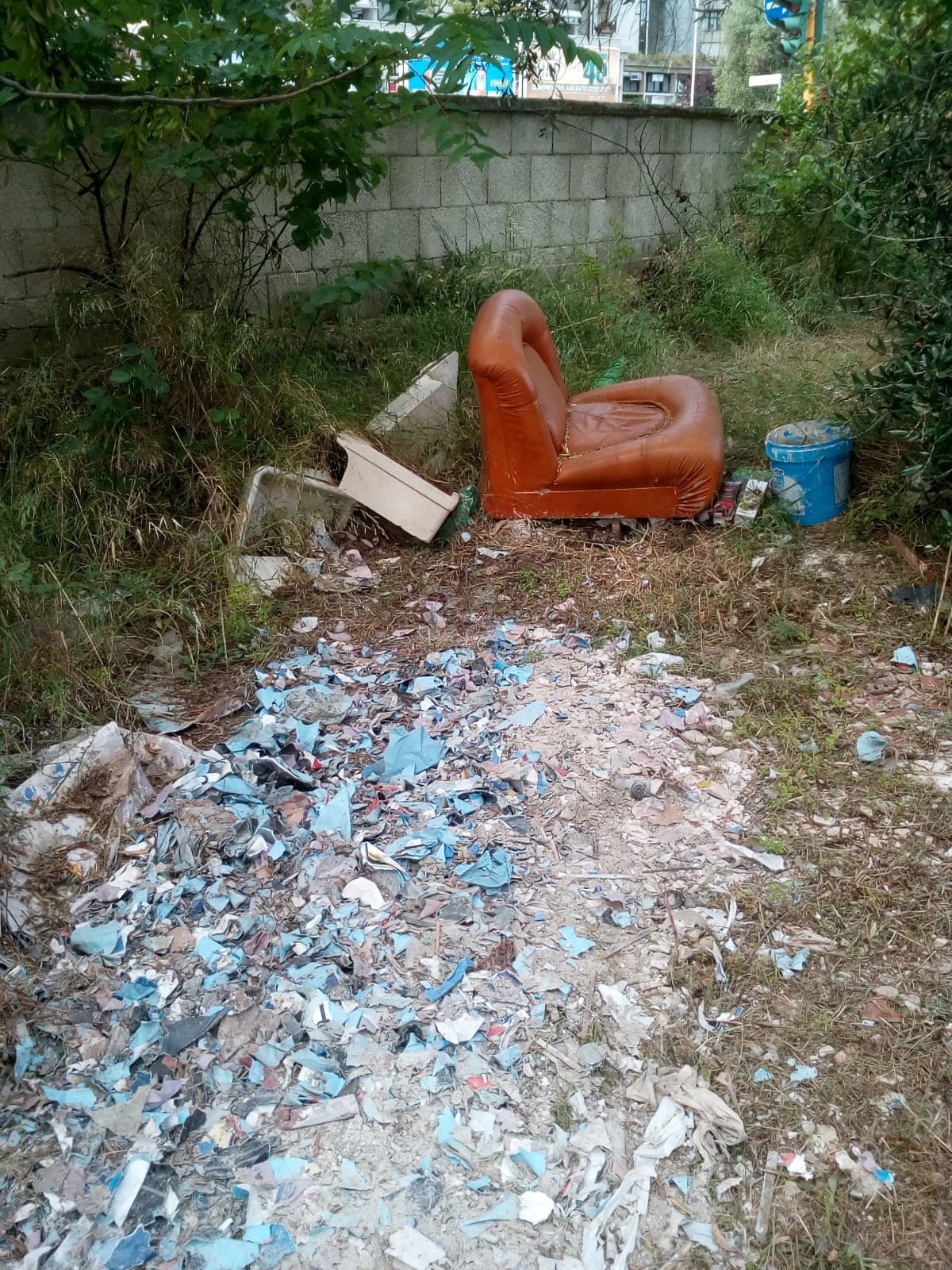 Secchi di pittura, lavandini, residui di vario materiale bruciato e deteriorato dal tempo e addirittura una poltrona. Siamo a Poggiofranco, nel centralissimo stradone a quattro corsie di via Gandhi, dove le aree adiacenti alla strada, coperte da siepi altrettanto incolte, sembrano ormai diventate una vera e propria discarica a cielo aperto.