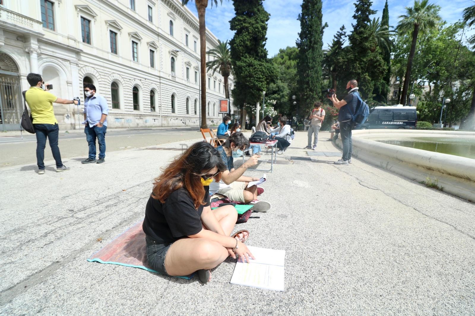 Per l’occasione i ragazzi, a distanza di almeno un metro e con la mascherina, hanno portato computer e libri all’aperto: “Non tutti hanno la fortuna di poter trovare luoghi idonei in cui potersi contentare – commenta nel video il portavoce Stefano Scoppio – molti vivono in case piccole con la famiglia o in situazioni di disagio. Le sono biblioteche chiuse ma non possiamo acquistare tutti i testi, soprattutto per chi dovrà laurearsi a breve”.