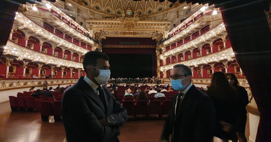 Il teatro Petruzzelli di Bari ha riaperto oggi dopo il lockdown con il concerto gratuito diretto da Roberta Peroni. La città ha risposto a questo invito con grande entusiasmo, in pochi giorni sono arrivate più di 2000 richieste di prenotazioni. “Per questo con la Fondazione abbiamo deciso di programmare 6 giornate di repliche – aveva annunciato Decaro – per permettere a quanti più cittadini possibile di assistere al concerto, tenendo presente che secondo le regole anti Covid, possono partecipare soltanto 200 persone per spettacolo”.