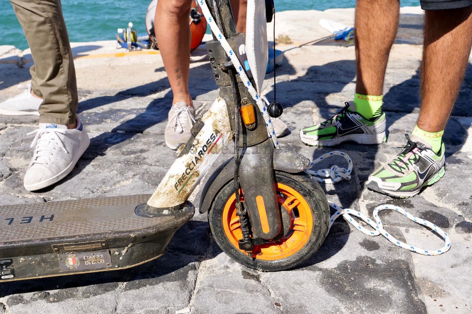 Questa mattina al molo di Sant’Antonio di Bari, sul lungomare sotto la muraglia tra turisti e sportivi, i volontari dell’associazione Bari Scuba hanno recuperato dal fondale a circa 5 metri di profondità un monopattino elettrico in sharing che era stato gettato in mare – da persone che difficilmente saranno identificate – circa 20 giorni fa.