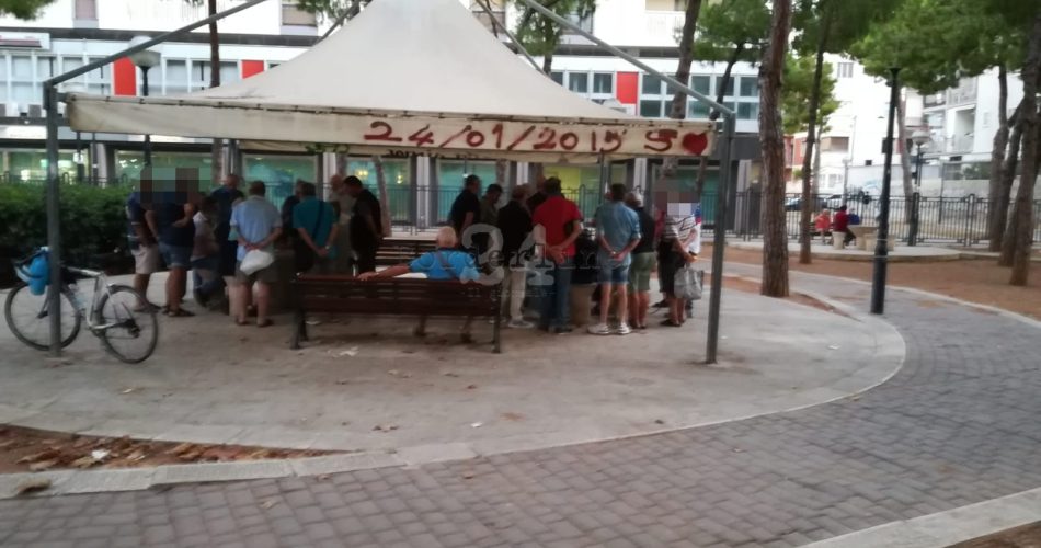 Gruppi di anziani sotto il gazebo del giardino della Chiesa Russa. Tornano le partite a carte e gli assembramenti (senza mascherine o con mascherine abbassate sul mento) da parte degli anziani nelle aree verdi. Anziani evidentemente non preoccupati dall’aumento dei contagi che sta interessando la Puglia, soprattutto Bari e provincia. La foto è stata scattata questa mattina.