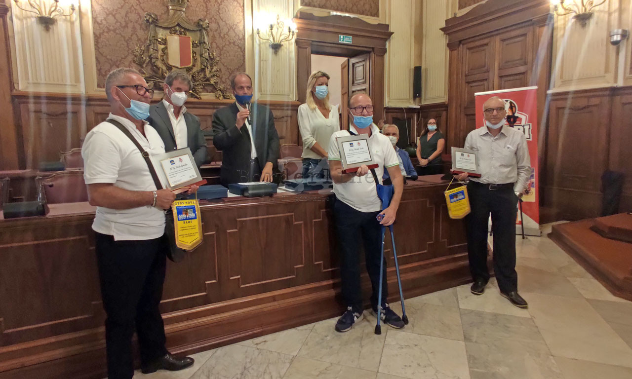 Consegnata questa mattina, nella sala consiliare di Palazzo di Città, dai presidenti delle associazioni Gens Nova e HBari 2003 Antonio Maria La Scala e Gianni Romito, alla presenza del vicesindaco Eugenio Di Sciascio e della presidente della Commissione consiliare Pari opportunità Silvia Russo Frattasi, una targa di riconoscimento ad alcuni cittadini baresi che assistono a tempo pieno il proprio coniuge non autonomo, sacrificando la propria vita.