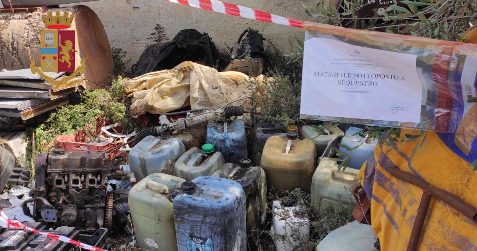 Gli agenti hanno approfondito il controllo ed hanno eseguito accertamenti mirati alla verifica dello smaltimento dei rifiuti: in un’area attigua al capannone, hanno rinvenuto un deposito abusivo contenente rifiuti speciali altamente inquinanti (ricambi ferrosi, pezzi di meccanica, numerosi contenitori di oli esausti, batterie e filtri dell’olio). A seguito di ciò, l’intero terreno all’interno del quale era ubicata la discarica è stato sequestrato. Elevate sanzioni per la mancanza di licenza: in applicazione della legge 122 del 1992 è stata comminata una multa di 5.164,33 euro, con sequestro finalizzato alla confisca di tutta l’attrezzatura presente.
