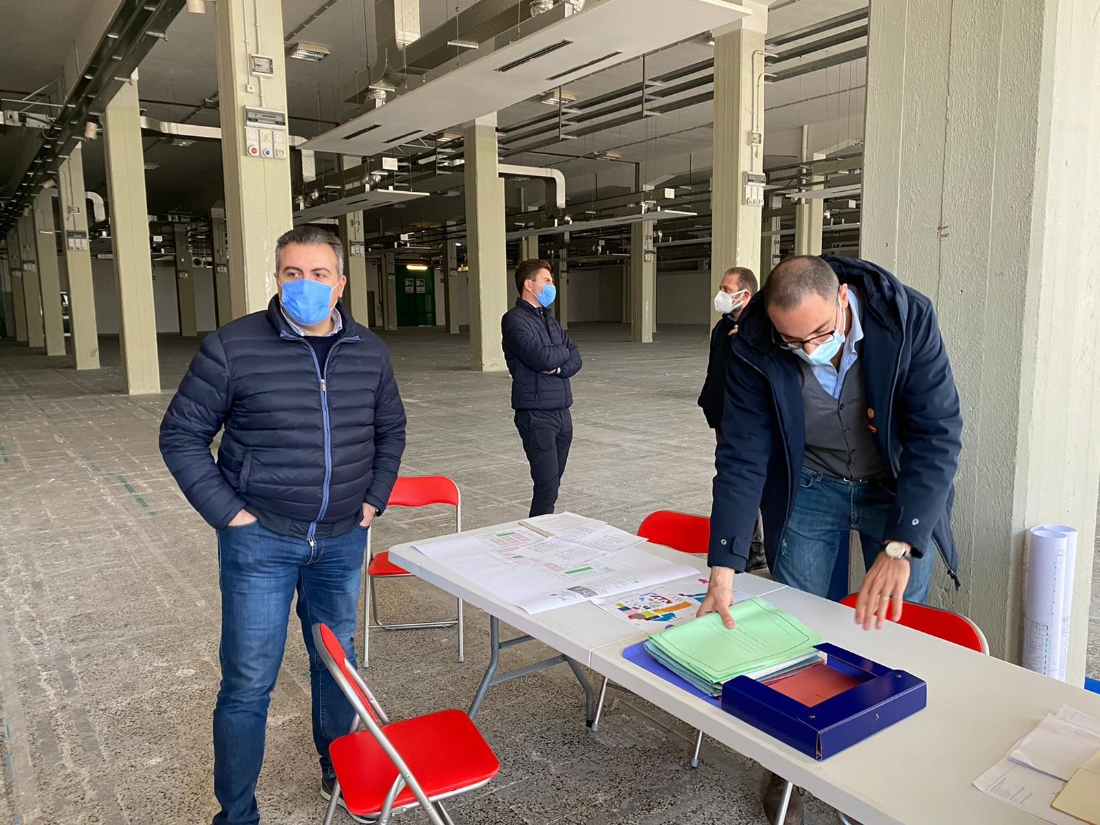 Cinque padiglioni ancora spogli, ma al cui interno fanno capolino sedie e una scrivania piena di progetti, planimetrie, disegni, autorizzazioni e studi specifici. Studi sulla divisione delle aree funzionali e, soprattutto, sui percorsi previsti per i pazienti, per il personale sanitario e per i materiali. E ancora, tanti mazzi di chiavi, utili all’accesso alle diverse aree, agli ingressi, ai cancelli carrabili, alle gallerie e ai padiglioni che saranno destinati alla cura dei malati. Siamo nella Fiera del Levante di Bari e queste sono le prime immagini che si parano ai nostri occhi dell’area in cui sorgerà il nuovo ospedale da campo per l’assistere ai malati di Covid19.