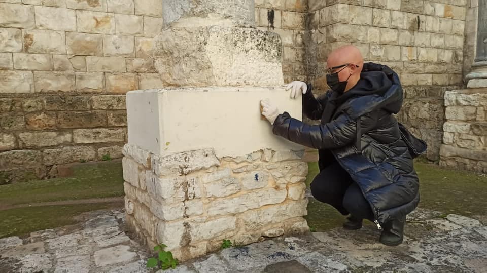 “Un’azione straordinaria, per sensibilizzare tutti noi alla consapevolezza di un patrimonio culturale preziosissimo”. Così Ines Pierucci, assessore alle Culture del Comune di Bari, ha commentato sulla sua pagina Facebook l’iniziativa che l’ha vista protagonista, questa mattina, in compagnia della Soprintendenza archeologica Belle Arti e Paesaggio, della Casa Centro Anspi Santa Annunziata e dei bambini e delle bambine di Bari Vecchia: armati di guanti e spugne, rigorosamente indossando la mascherina, i piccoli, guidati dalla stessa Ines Pierucci, ma anche dalla soprintendente Maria Piccarreta e da Don Franco Lanzolla, hanno contribuito al recupero e alla pulizia delle colonne di piazza Santa Maria del Buonconsiglio, recentemente protagoniste dell’ennesimo atto di vandalismo da parte di ignoti.
