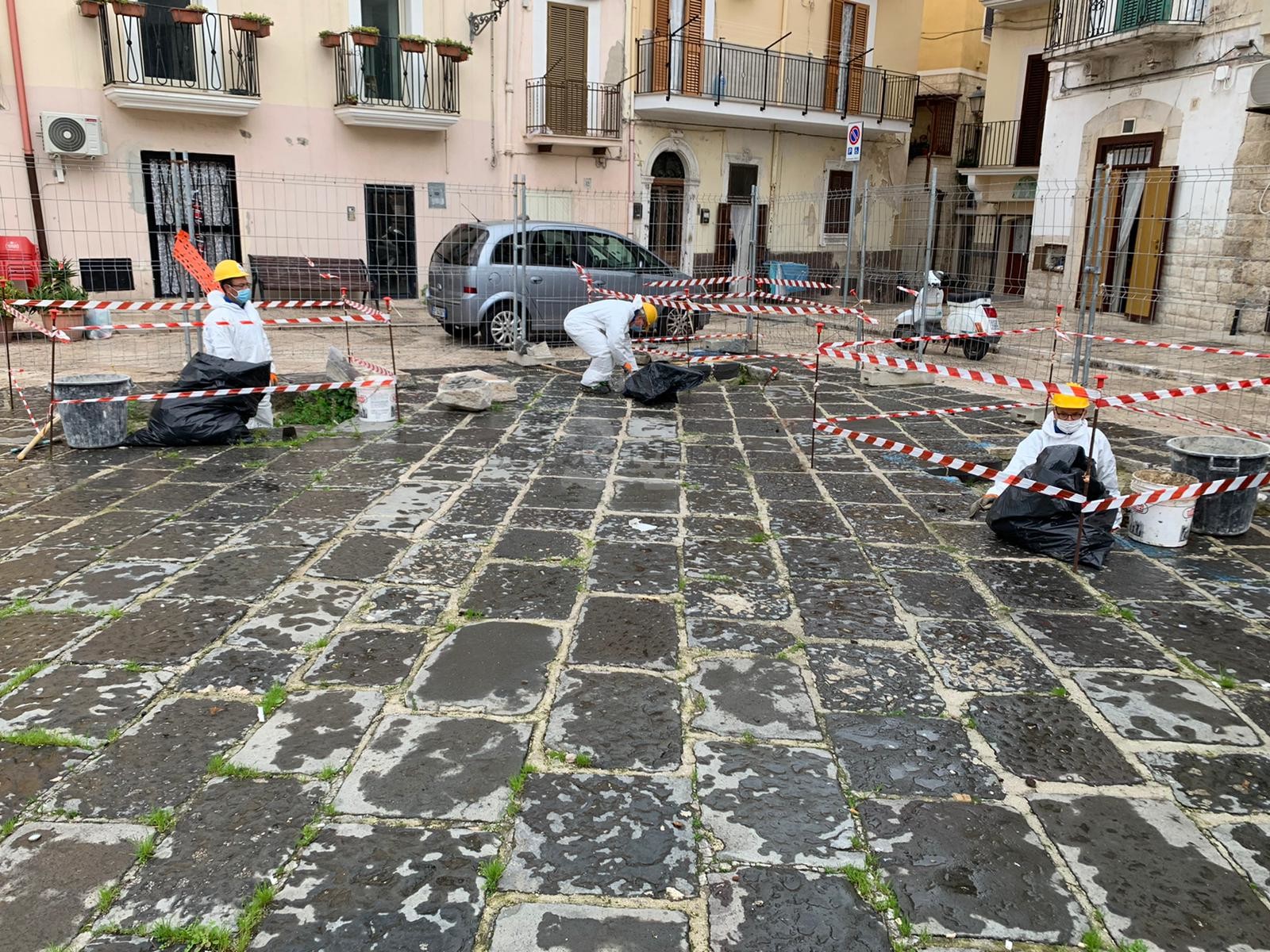 La prima operazione che ha impegnato gli operai è stata la pulizia delle buche e la rimozione dei rifiuti e della vegetazione spontanea creatasi. Subito dopo, si procederà con il cospargimento di materiale arido sul fondo e la stesa di un tessuto che riguarderà sia il fondo sia le pareti degli alloggiamenti. Prescrizione, quest’ultima, della Sopritendenza, utile proprio a preservare i resti murari rinvenuti nel sottosuolo con le operazioni di scavo.